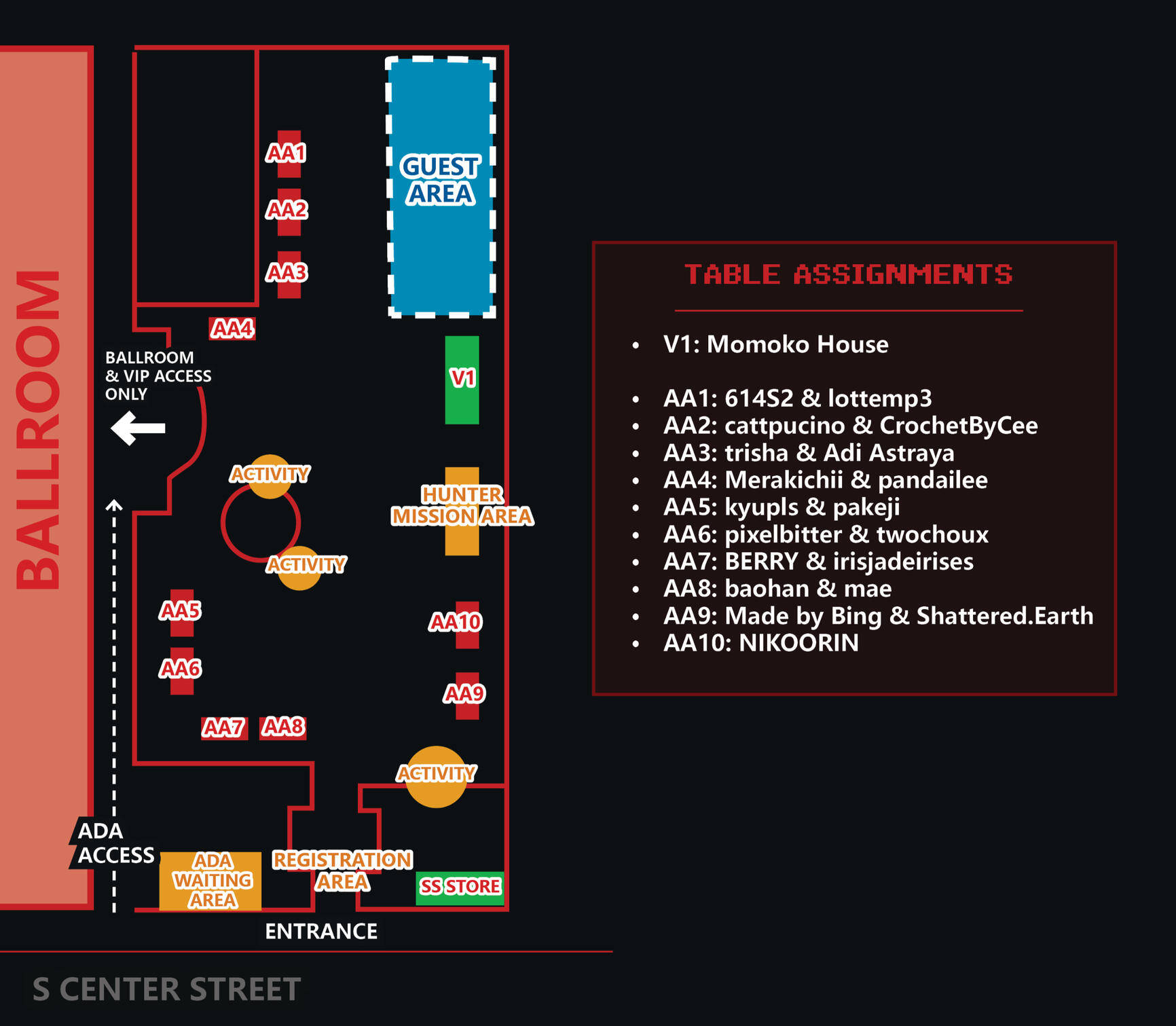 Color coordination required for Courtside & MVP attendees.